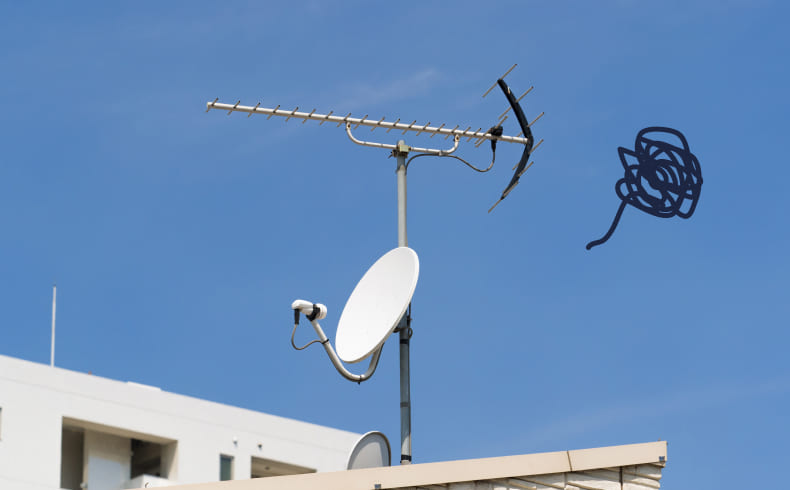 アンテナの不具合で電波障害が起きた場合、気候による影響や周辺環境の変化など、考えられる原因は様々ですが、多くの場合はアンテナの角度調整や補完ブースターの設置などにて対応可能です。アンテナの場所次第では、1時間もかからずすぐに修理できますのでお気軽にお申し付けください。
